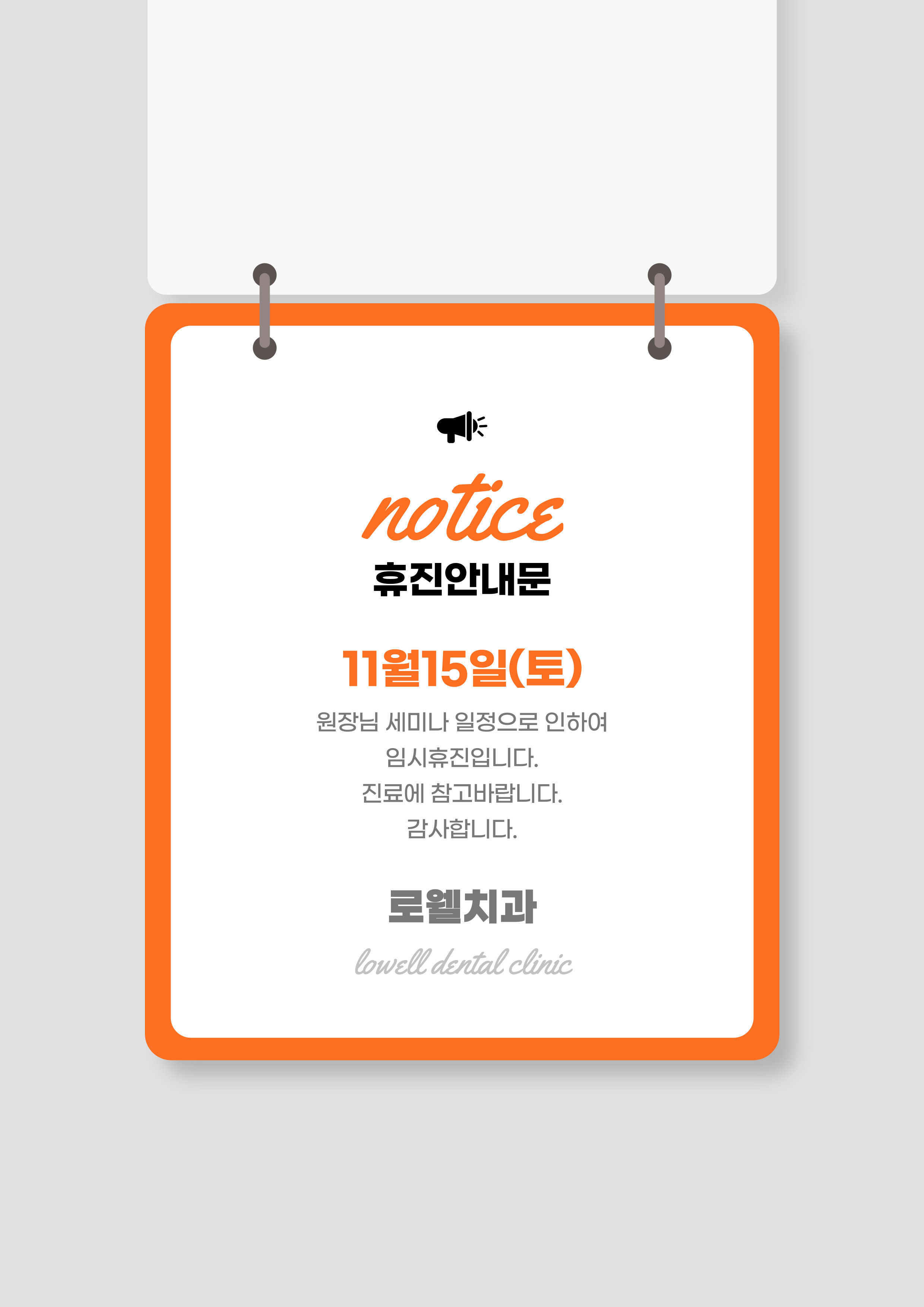 11월 15일 임시휴진이오니 진료에 참고 바랍니다.